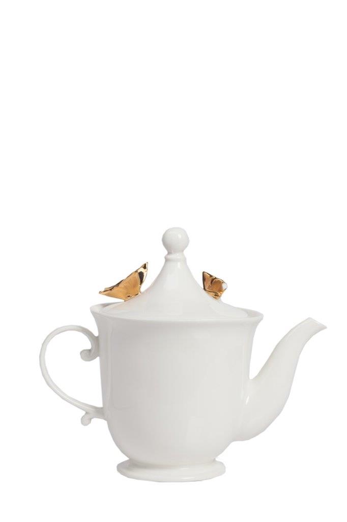 Заварной чайник Presente — это белоснежная керамика, лучшее качество от производителя, элегантность формы. Золотые бабочки, присевшие на крышку чайника, заставляют влюбиться в него с первого взгляда. Приобретите его в комплекте с другими предметами из этой коллекции — и вы получите замечательный и стильный набор для своей кухни!
