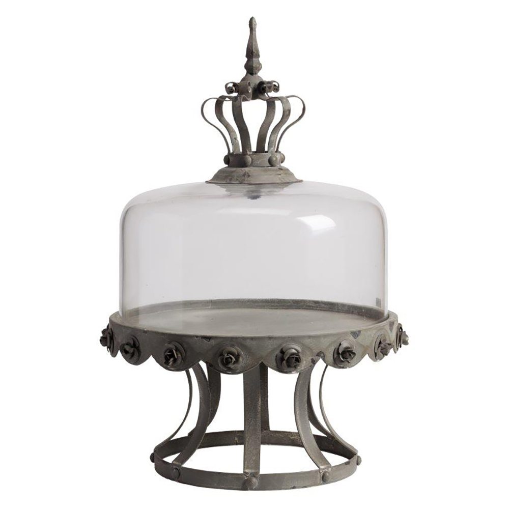 Круглый сервировочный поднос со стеклянным куполом Danseuse предназначен для подачи блюд заданной температуры. Корпус сделан из металла под старинную бронзу. Все металлические детали — ручка купола в виде стилизованной короны, кованая подставка, декорированная розами — придают подносу вид старины и аристократичности. В нем можно подать к столу самые изысканные блюда или напитки.