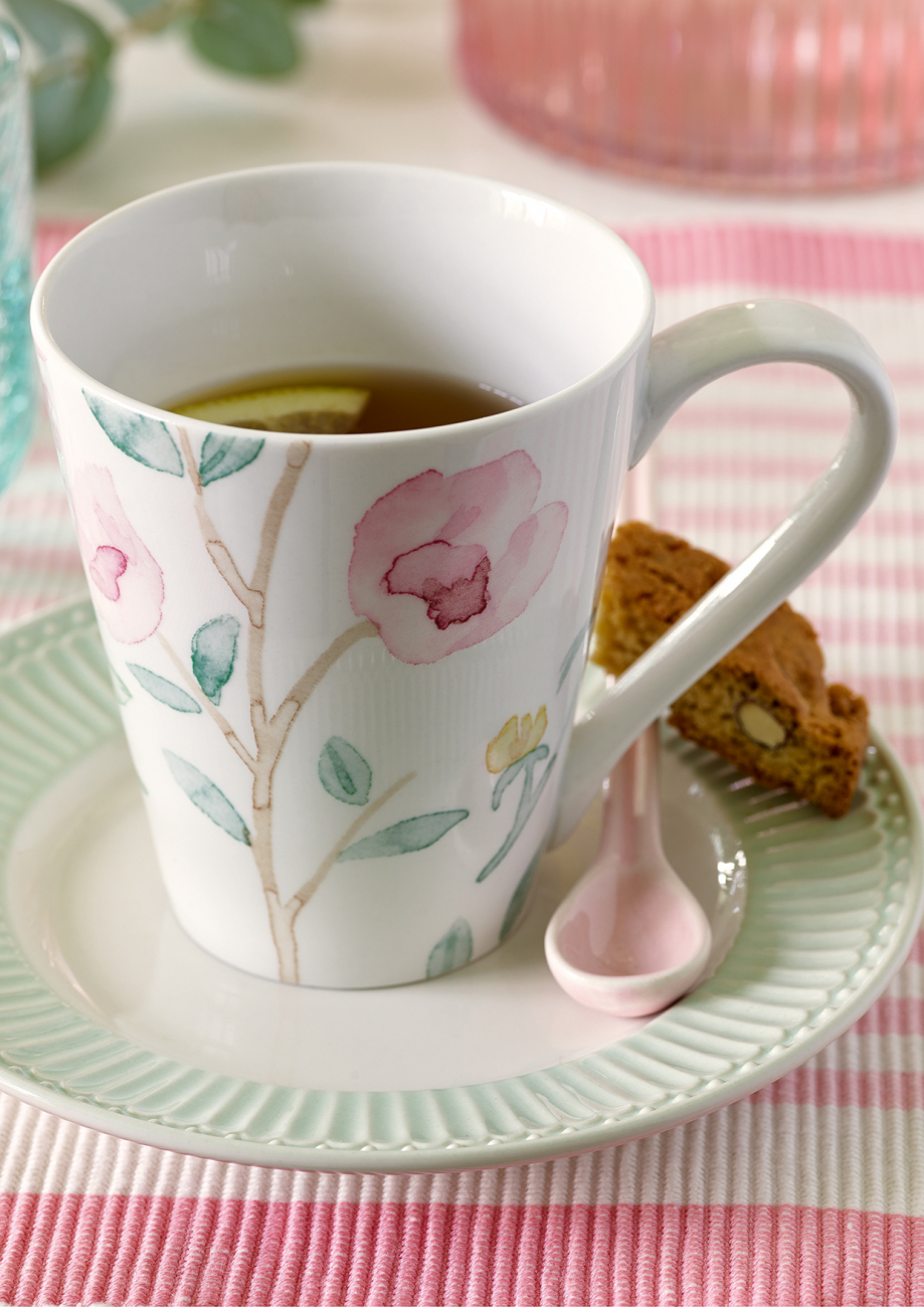 Базовая коллекция Alice создана для идеального сочетания посуды ранних и будущих коллекций Greengate. Впервые появилась в каталогах в 2016 году и с тех пор завоевала миллионы сердец своей универсальностью, зефирной нежностью и разнообразием посудной линейки. Коллекция Alice в пастельных тонах pink, blue, green превосходно сочетается как между собой, так и с классическими цветочными принтами, разбавляет их и облегчает композицию. Солнечный желтый цвет Alice pale yellow в сервировке вносит свежесть и яркость погожего летнего денька. Выполнена из высококачественного фарфора, устойчивого к сколам, допускается использование в посудомоечной машине и микроволновой печи. Коллекция Alice – это беспроигрышный вариант как для знакомства с коллекционной посудой Greengate, так и для принципа «mix and match» смешивай и сочетай.