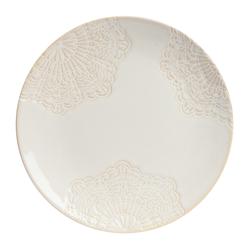 Элегантная тарелка Bernoot из грубой керамики в стиле модерн представлена в нежном цвете слоновой кости. Она имеет простую классическую форму, но оригинально декорирована рельефным изображением ажурных салфеток. Тарелка Bernoot станет украшением любого стола, сервированного к приему гостей или важному торжеству. Тарелку можно приобрести отдельно или в дополнение к другим предметам коллекции в этом же цвете.