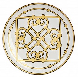 Классическая плоская тарелка для закусок и вторых блюд серии «Marbella» выполнена из высококачественного костяного фарфора и украшена великолепным геометрическим орнаментом в стиле модерн moderne. Сочетание золотистого и белого цветов придают изделию особое благородство. В оформлении коллекции используется несколько видов орнамента, превосходно сочетающихся и дополняющих друг друга. Вы можете приобрести тарелку отдельно или в комплекте с другими предметами серии.