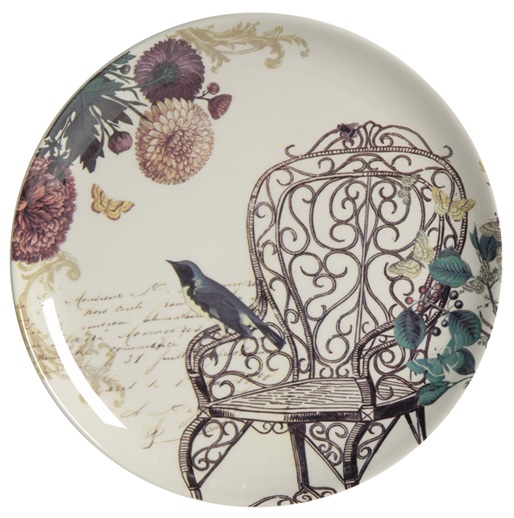 Выполненная из грубой керамики тарелка Rimini диаметром 21 см декорирована рисунком, на котором изящно изображено ажурное садовое кресло, цветы и птица — сцена летнего дня. Благодаря насыщенному рисунку, тарелка может стать самостоятельным элементом интерьера кухни, столовой и украсит любой дом. Приятно есть из красивой тарелки. Доставьте себе удовольствие!