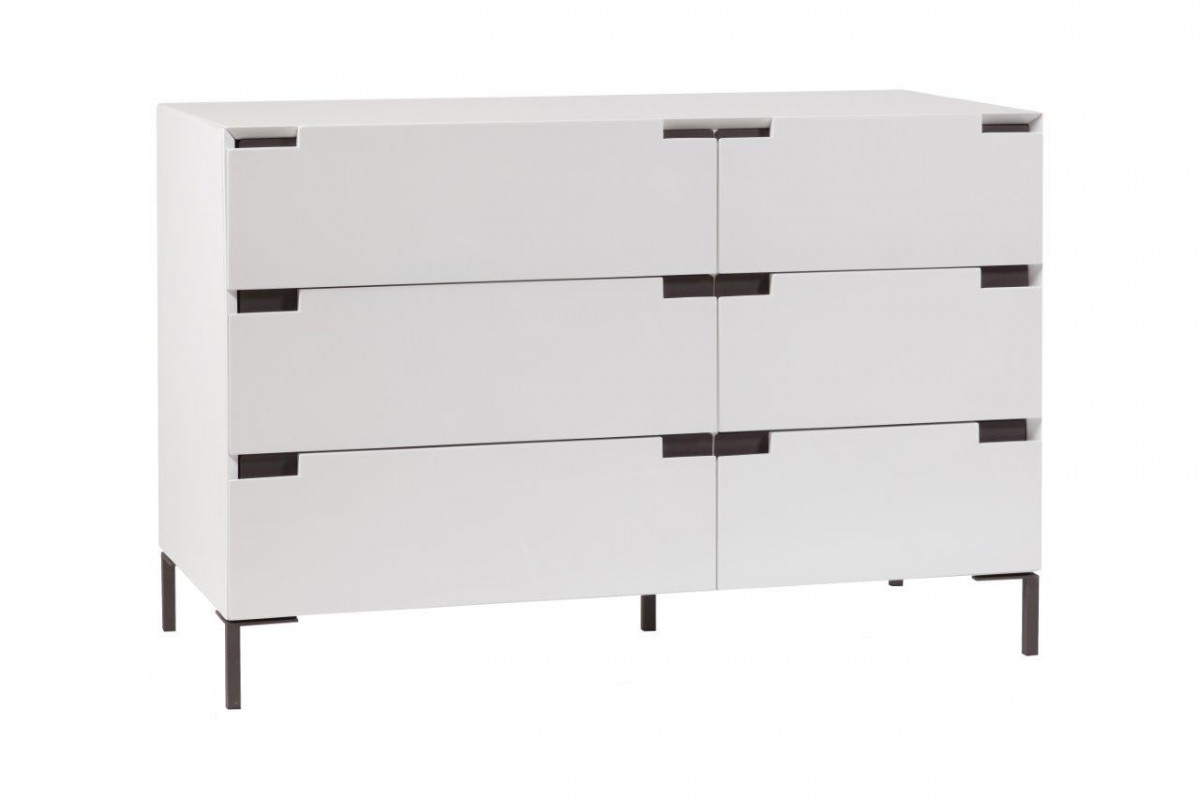 Нас могут окружать только безупречные вещи и тому доказательство — оригинальная тумба Miramonte White Varnish на четырех тонких стальных ножках, сделанная в белом цвете с ассиметричными шестью ящиками. Модель отличается тем, что не имеет ручек — вместо них сделаны фигурные прорези на дверцах. Такую тумбу можно вписать в интерьер спальни, гостиной и даже офиса, где можно хранить как одежду и аксессуары, так и бумаги или документы.