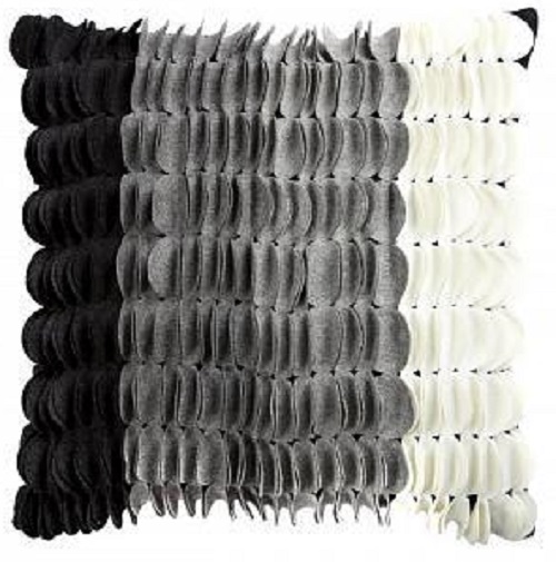 Подушка c узором Sweet Home Gray 2 квадратной формы, покрыта тканью в белом, светло-сером, сером и черном цвете, с рельефным узором из вертикальных чешуек. Мягкий и упругий наполнитель, хорошо поддерживает спину, помогает расслабиться и принять удобную позу, обеспечивает крепкий сон.
